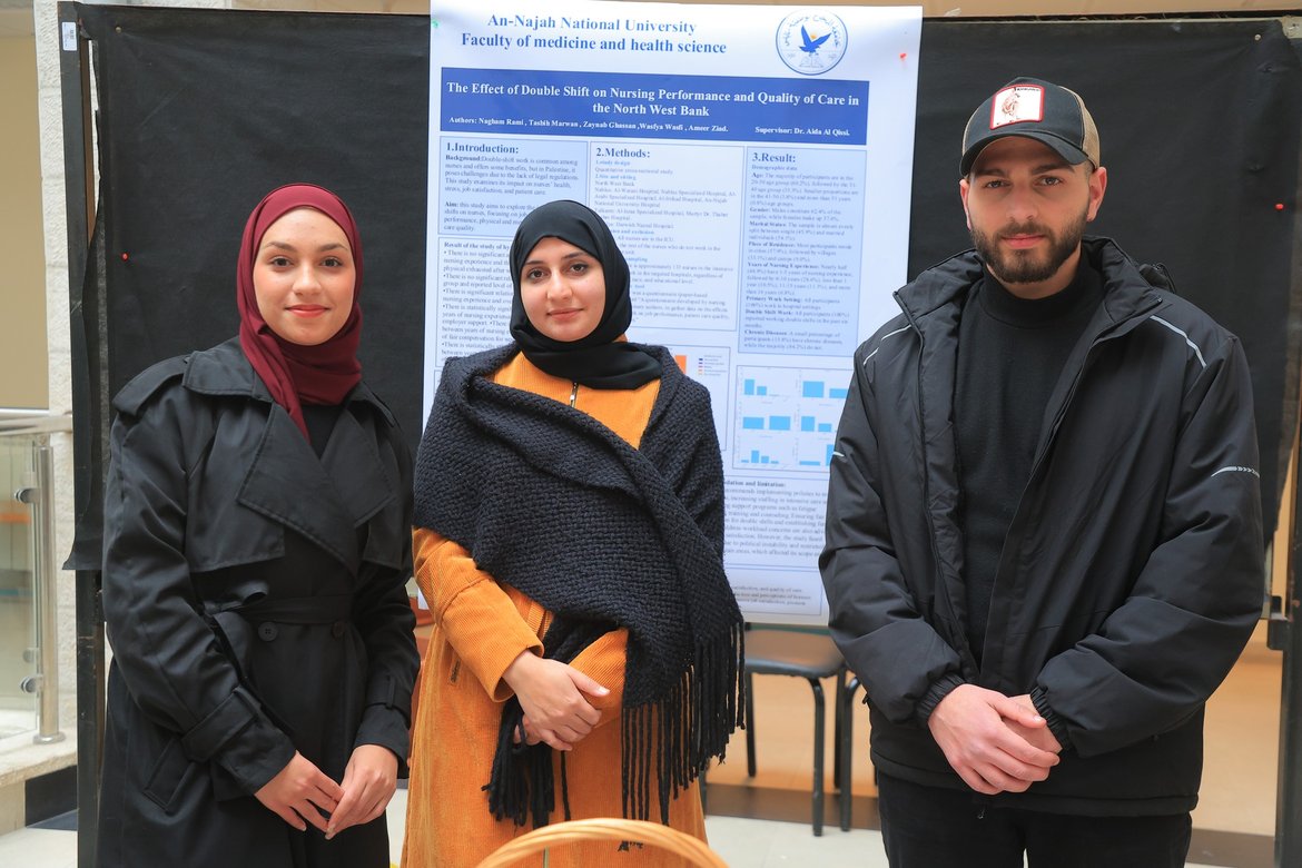أفكارٌ ملهمة، وإبداعٌ علميّ… طلبة السنة الرابعة في دائرة التمريض والقبالة، بالتعاون والتنسيق مع عمادة شؤون الطلبة، وتحت إشراف الدكتورتين عائدة أبو السعود القيسي وشروق قادوس، يستعرضون ويقدمون ملصقات لمشاريع تخرجهم. السابق التالي عدد القراءات: 13